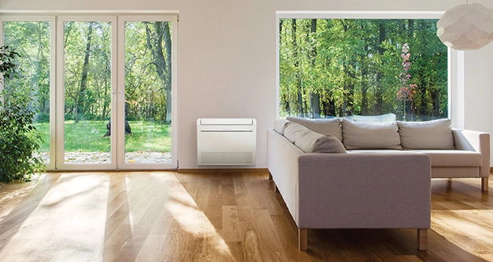 Floor units are usually less visible than wall mounted heat pumps and can be a good option if you are replacing a nightstore or gas heater. An advantage of installing a floor console heat pump is that it does not take up wall space if you are keen to hang artwork.